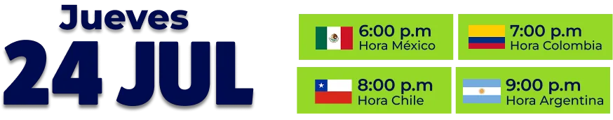 🕕 6:00 p.m. México | 7:00 p.m. Colombia | 8:00 p.m. Chile | 9:00 p.m. Argentina
